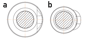 若有需要時亦可縮小螺帽外徑,循環(huán)管組件超出其圓周的「 管凸出型(V)」,如圖b所示