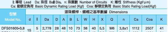 DFS1605滾珠絲桿參數(shù)