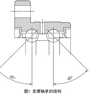 支承軸承由兩排接觸角為45° 的DB 型角接觸軸承組成, 來(lái)提供予壓。以往用于安裝皮帶輪的套環(huán),現(xiàn)與螺母組合為一體(參照斷面A)
